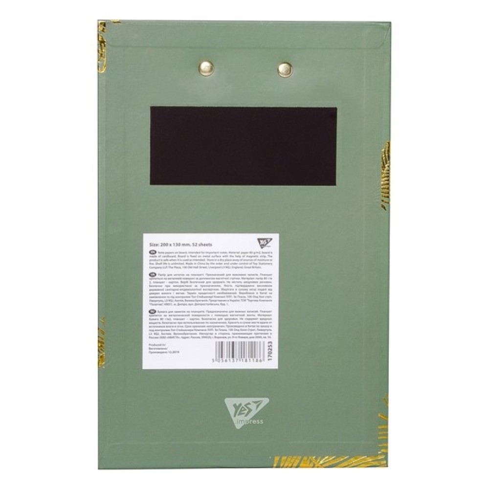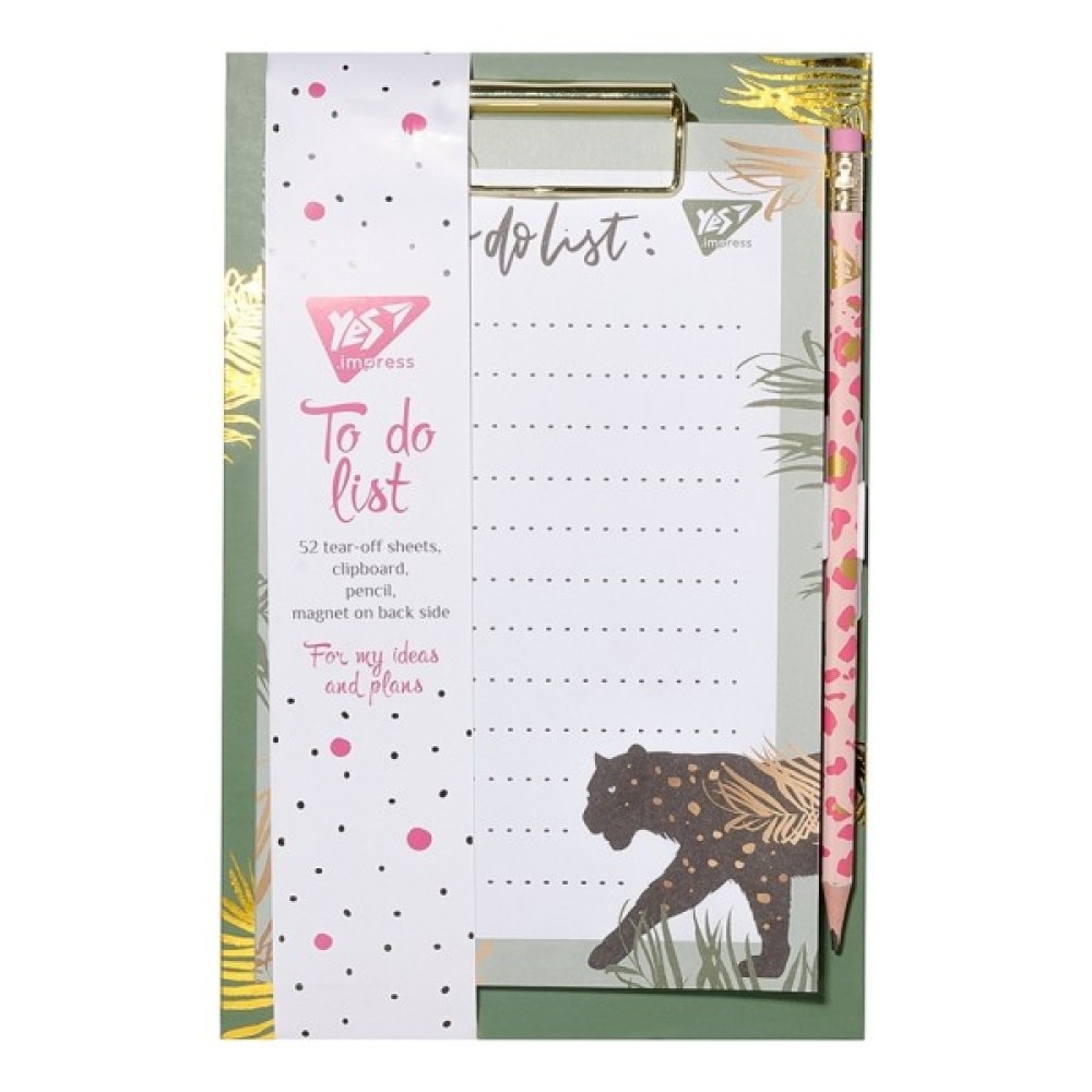 Папір для нотаток YES на кліпборді, відмінне рішення для офісу і дому! На звороті кліпбода є магнітна стрічка, за допомогою якої він кріпиться на металевій поверхні. У комплекті: блок паперу для запису, олівець з гумкою, кліпборд. Кількість аркушів в паперовому блоці - 52. Розмір листа: 13 х 20 см, розмір кліпборда: 15 х 23 см.