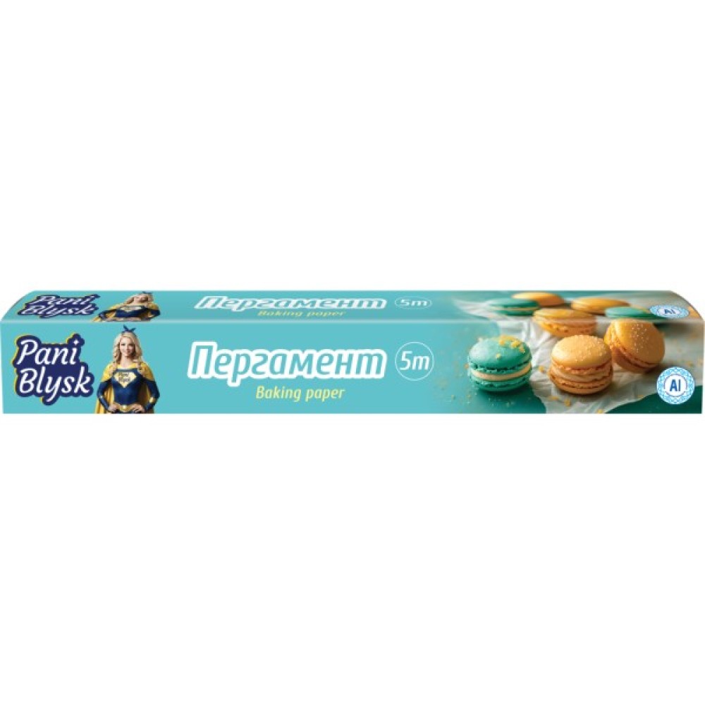 Пергамент Pani Blysk призначений для випічки, упаковки та зберігання харчових продуктів, порційної заморозки продуктів. Підходить для випікання в газових і електричних духових шафах при температурі до 220°С. Силіконове покриття пергаменту Pani Blysk робить його жиронепроникним і термостійким, а також збільшує розділювальні властивості пергаменту.