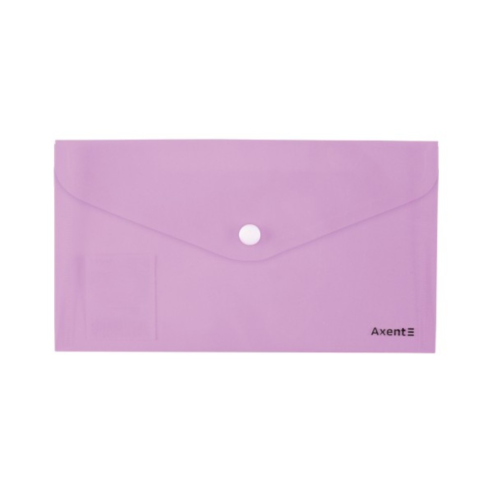 У папках-конвертах на кнопці зручно носити документи, щоб зберегти їх акуратний вигляд, уникнути втрати. Папки-конверти на кнопках Axent виготовлені з первинного поліпропілену, щільність пластику передбачає їх зносостійкість і збереження презентабельного вигляду в процесі використання. Мають глянцеву поверхню. Закриваються на кнопку, захищаючи папку від розкриття. Пастельні кольори.