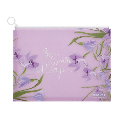 Папка з блискавкою ARABESKI від BUROMAX - це вишуканий і функціональний аксесуар для зберігання і транспортування паперів! Така папка захистить документи, малюнки, ескізи, посібники, зошити, брошури та багато інших паперових виробів від заминання, намокання чи забруднення. Оригінальний квітковий дизайн папки з блискітками, що іскряться у світлі, неодмінно буде приваблювати, радувати око власника та надихати!
