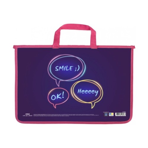 Матеріал: поліпропілен. Товщина: 500 мкм. Формат: А4. Загальне відділення на блискавці і 2 відділення всередині. Тканинна окантовка. Металева фурнітура.