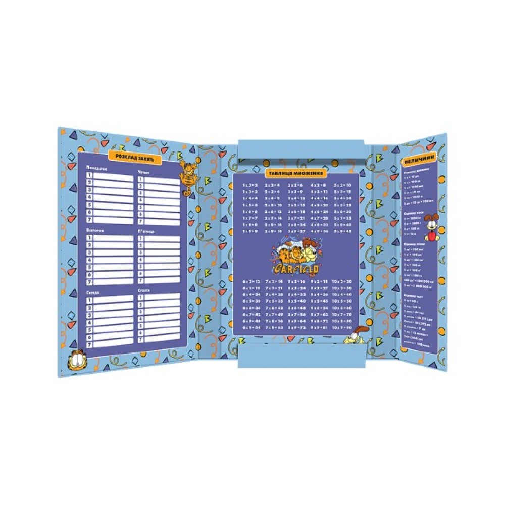 Щоб важливі речі завжди були перед очима, всередині є поле для розкладу, табличка множення та список величин.