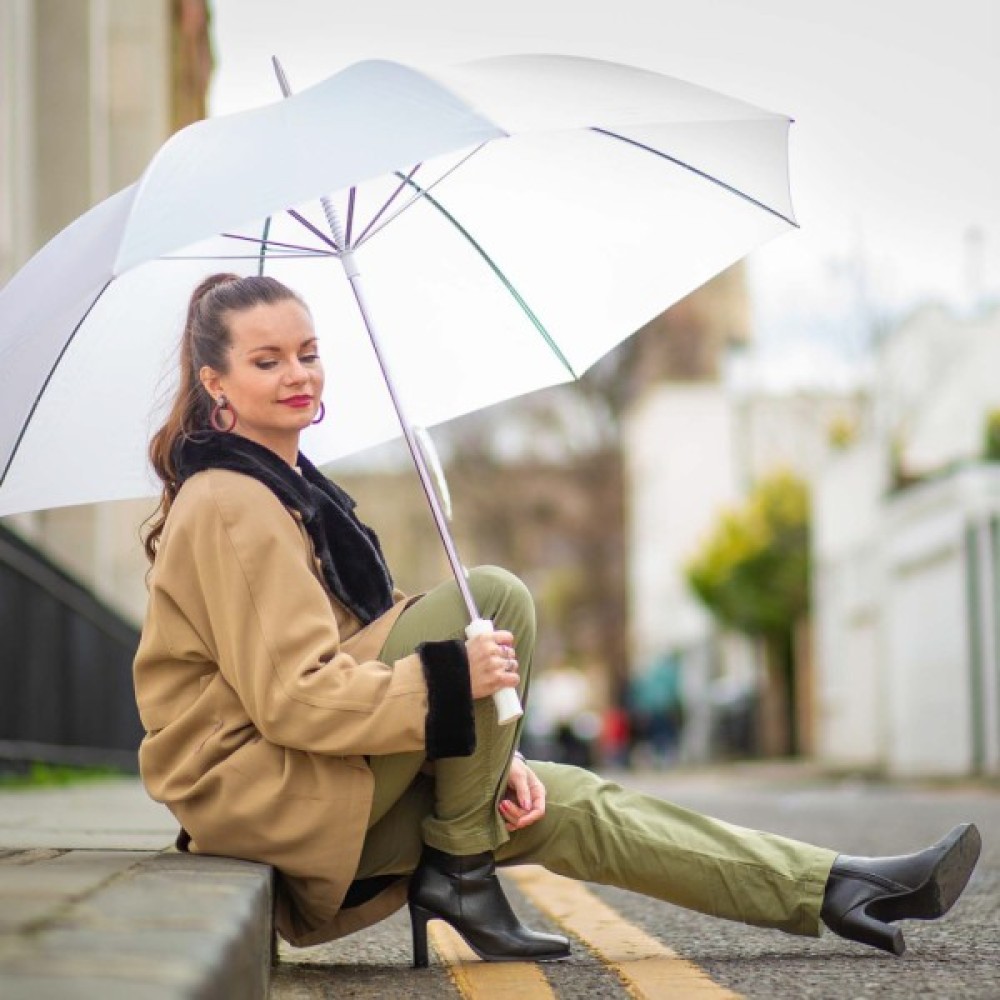 Стильна парасолька білого кольору Fulton S664 White (Білий) чудово підійде в урочисті, але дощові дні. З таким оригінальним гольфером навіть у самий сірий день і негоду ви будете виглядати на висоті.