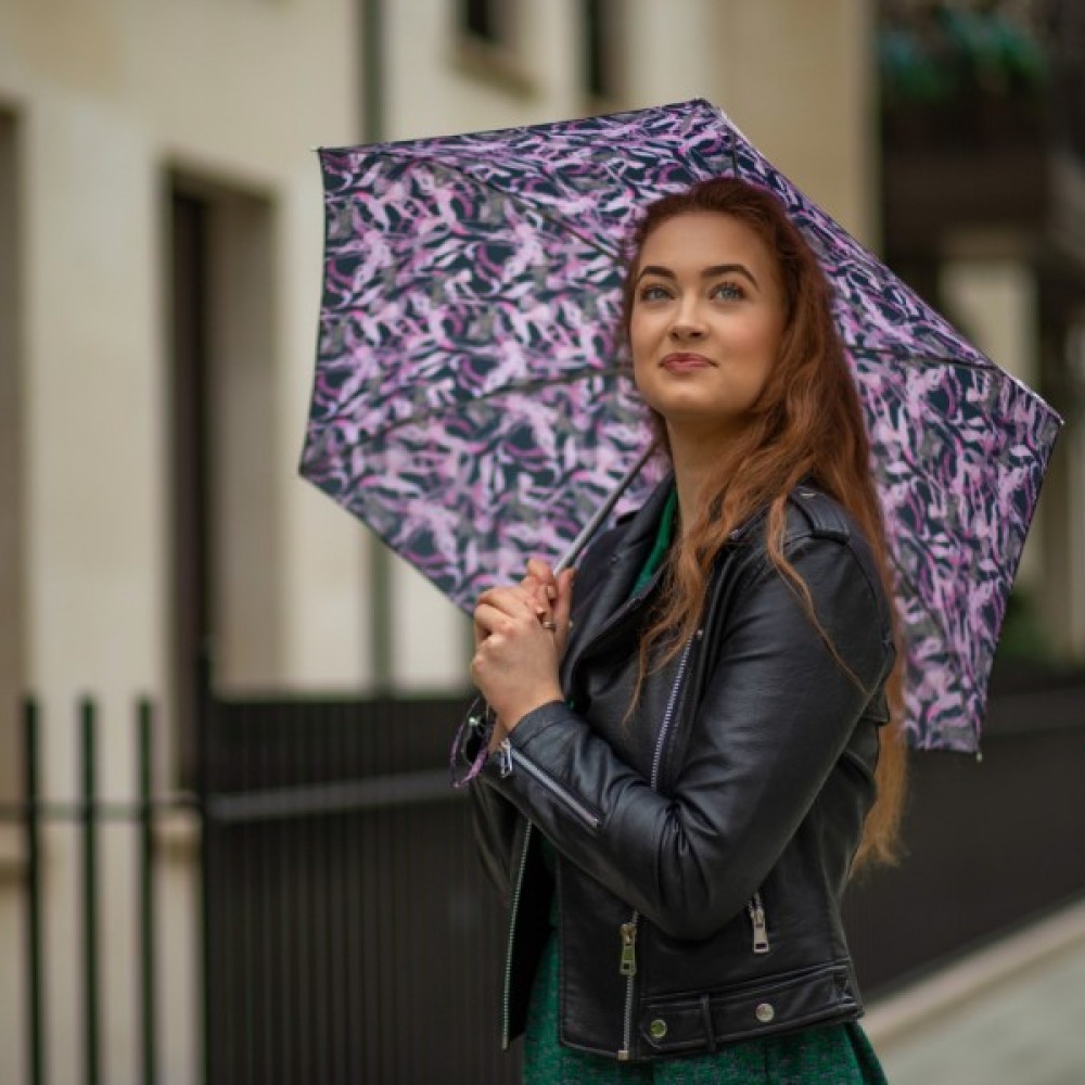 Парасолька жіноча є найбільш компактною моделлю механічної парасольки. Його розмір у складеному вигляді становить лише 15 сантиметрів. Колір бані та малюнок на ньому підвищить вам настрій у дощову, похмуру погоду.