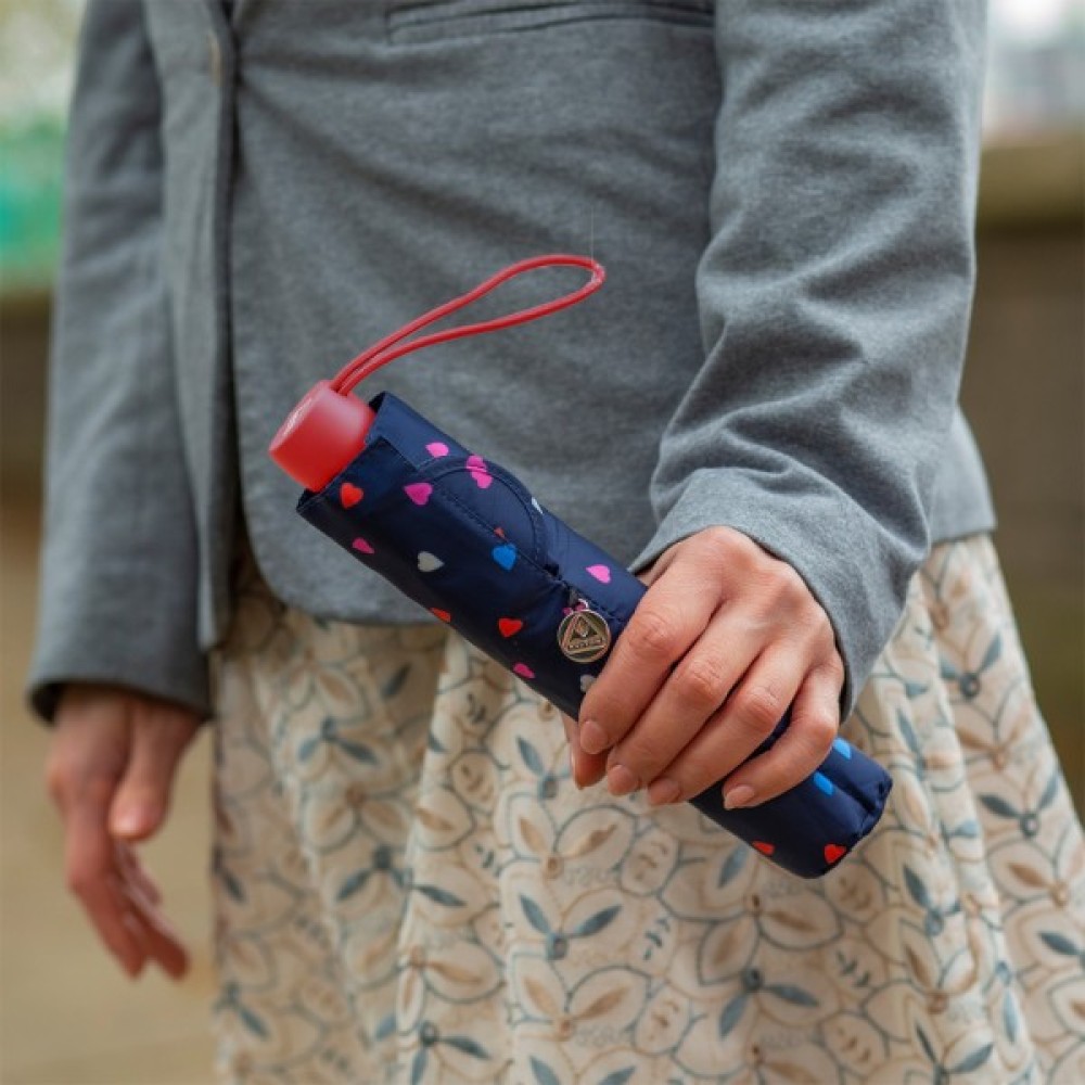 Суперлегка парасолька Fulton Superslim-2 з безліччю різнокольорових сердець по куполу подарує романтичний настрій під час похмурих дощових днів.