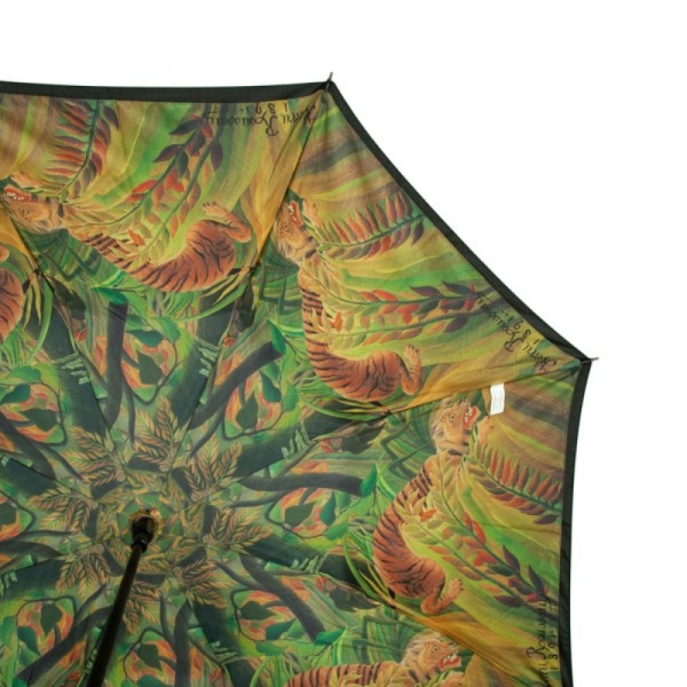 Парасолька Fulton The National Gallery Bloomsbury -2 Tiger Surprised L847 – чудова дизайнерська парасолька-тростина з подвійним куполом. Зовні купол чорний, а зсередини можна побачити репродукцію живопису Анрі Руссо - Tiger in a Tropical Storm, 1891р.