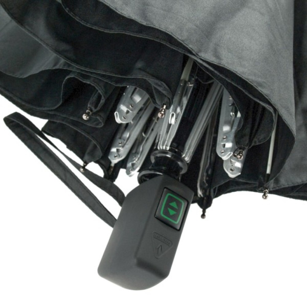 Це повністю автоматична модель (відкриття і закриття при натисканні на кнопку) в три додавання , що має міцний стрижень зі сталі, не менш міцний і надійний каркас з алюмінію і спиць з гнучкого фібергласу. Така конструкція гарантує довговічність парасольки і надає їй підвищеної стійкості до вітру.