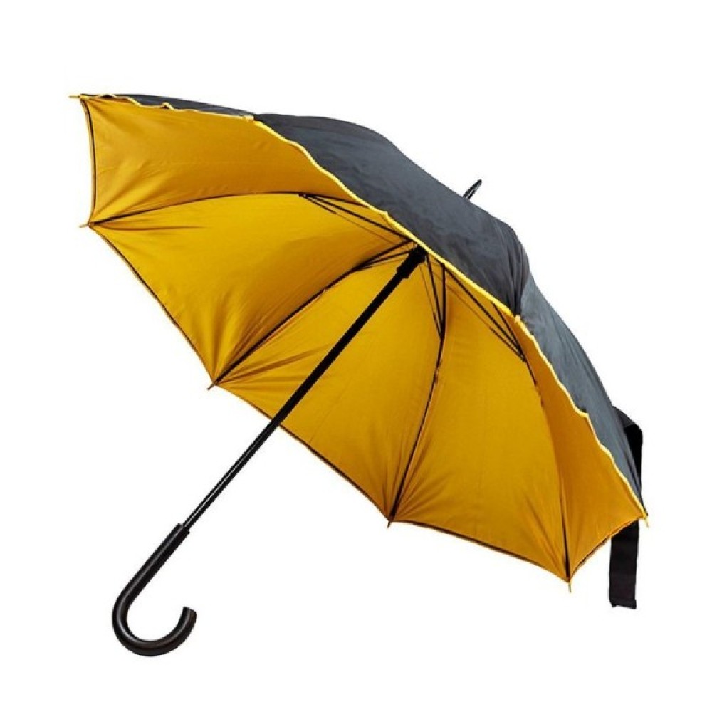 Стильна парасолька з подвійним шаром нейлону. Верх чорного кольору, а знизу кольоровий матеріал.