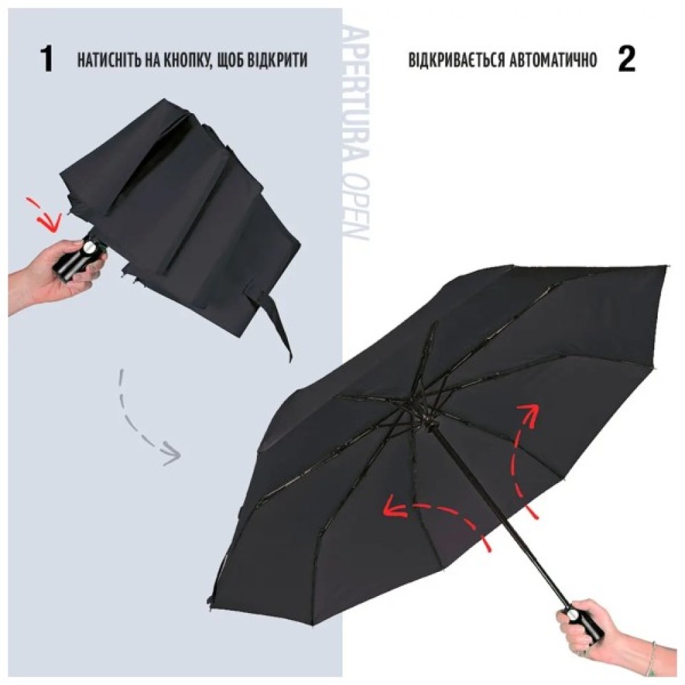 Автоматичне відкриття та закриття дозволяє користуватися парасолькою однією рукою.