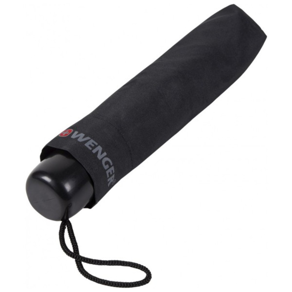 Механічна складана парасолька Wenger з чорним куполом. Великий діаметр купола буде комфортним як жінці, так і чоловікові. Ефективний захист від дощу з компактними розмірами у складеному вигляді, здатний легко розміститися в сумці, рюкзаку.