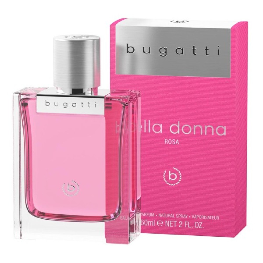 Bugatti Bella Donna Rosa Eau De Parfum — квітковий фруктовий аромат для жінок, створений у 2023 році. Колекція Bella Donna присвячена італійському вмінню насолоджуватися життям, красоті та враженням літа, що минає. Bella Donna Rosa запрошує заглянути затишну в джелатерію, розташовану в глибині паркової алеї, та насолодитися фруктовим морозивом.