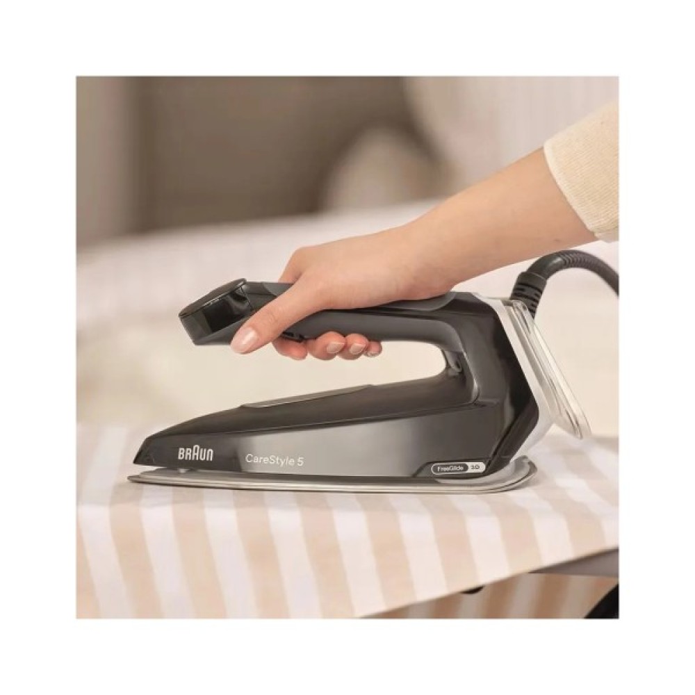 Випробуйте неймовірну потужність прасувальна система Braun CareStyle 5, яка поєднує в собі високу продуктивність та інноваційний підхід до прасування. Насолоджуйтесь професійними результатами з унікальною технологією PowerSteam і першою у світі підошвою FreeGlide 3D, що легко ковзає в будь-якому напрямку. Ергономічний дизайн, сертифікований інститутом ErgoCert, гарантує комфортне використання. Забудьте про складності прасування та звільніть час для того, що дійсно важливо, з CareStyle 5 від Braun.
