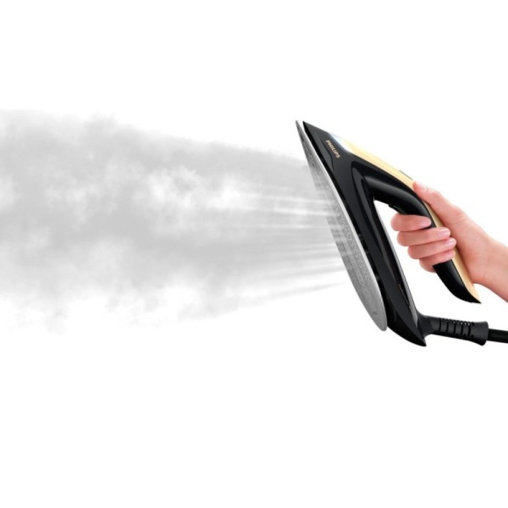 Прасування без зусиль. Швидкий результат. PerfectCare серії 8000 пропонує прасування без зайвих зусиль з новою технологією розпізнавання. Вона забезпечує вертикальне та горизонтальне прасування з автоматичною подачею пари: парогенератор адаптує кількість пари в залежності від швидкості руху праски для ще більш швидкого прасування.