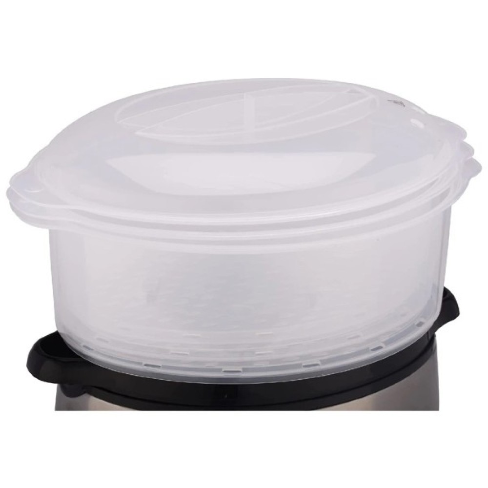 Сприятлива для здоров'я їжа може бути ще й смачною. Переконатися в цьому Ви зможете, зваривши продукти за допомогою пароварки COOK @ HOME 19270-56 від Russell Hobbs. Це сучасний, функціональний пристрій, оснащений різноманітними опціями й аксесуарами для зручності використання. Набір із декількох чаш, в тому числі – для рису, дозволить Вам реалізувати практично будь-який рецепт, причому за бажанням на трьох рівнях одночасно. Готову страву можна отримати точно в необхідний момент, для чого передбачений таймер. Для легкого наповнення водою модель оснащена спеціальним двостороннім зовнішнім пристроєм. Невикористана рідина накопичується в піддоні, з якого потім легко видаляється.