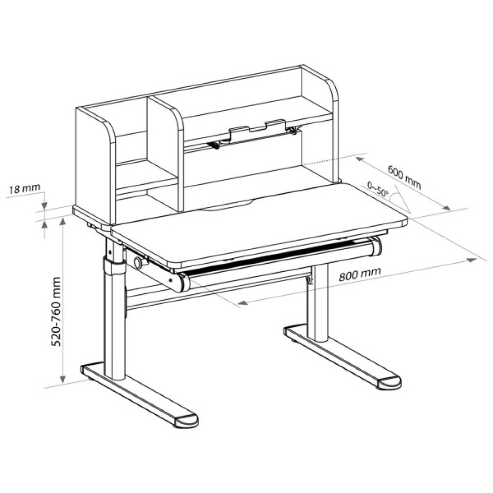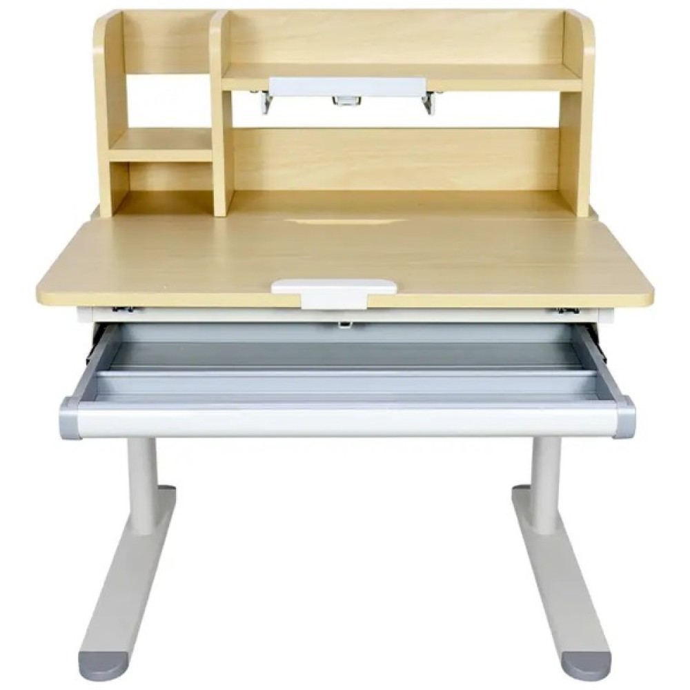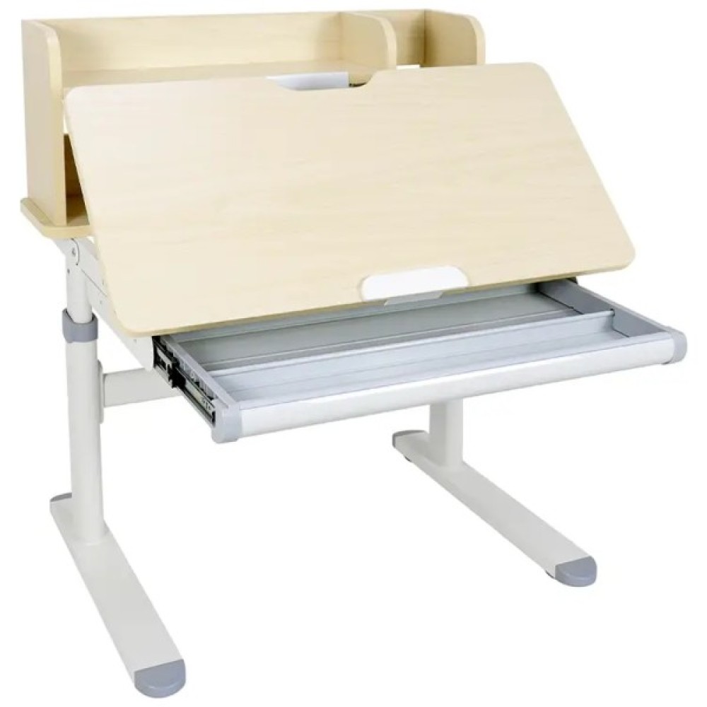 Особливості столу включають висувну шухляду під стільницею, яка забезпечує зручне зберігання книг, книжок і канцелярського приладдя, підтримуючи порядок на робочому місці вашої дитини. Механізм багатоступеневого регулювання висоти дає змогу легко та швидко підлаштувати стіл під ваш комфортний рівень.