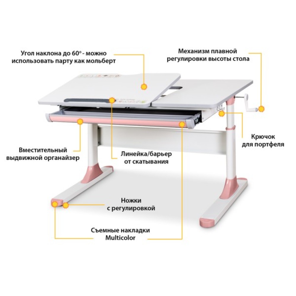 Комплектація парта; гачок для портфеля; висувний органайзер