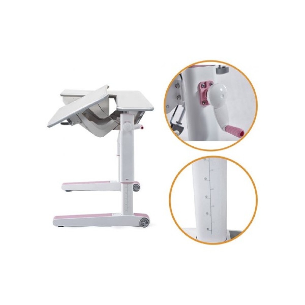 Високоякісний механізм газліфт сприяє легкому та плавному регулюванню. Також робоча поверхня стола обладнана функцією регулювання кута нахилу для підтримання правильної постави під час занять (читання, письмо, малювання). Кут нахилу стільниці регулюється в діапазоні 0-45 градусів.