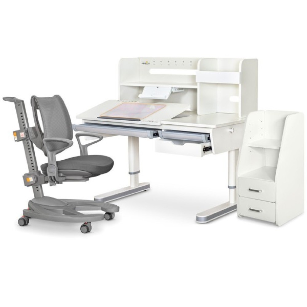 Комплект меблів Mealux Montreal чудово підійде для шкільних занять та творчих захоплень вашої дитини. Ергономічні елементи ідеально доповнять дизайн кімнати кожного учня з 1 класу та до закінчення школи. Висоту столу та стільця можна легко відрегулювати відповідно до дорослішання. Функціональна парта з полицею-надбудовою, оригінальна тумба та висувна скринька для канцелярії допоможуть розмістити всі необхідні речі в межах досяжності. Безпечні, міцні матеріали комплекту забезпечать тривале та комфортне користування для дитини.