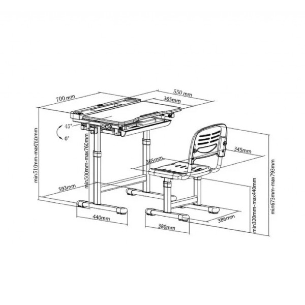 Дитячий комплект Cubby Vanda - виконаний в сучасному та яскравому дизайні. Завдяки зростаючому механізму даної моделі, комплект підходить як дитині 4 років, так і для школяра. Комплект ергономічний і безпечний для дітей завдяки округленим краям, а його механізми налаштувань висоти і нахилу наскільки прості, що з ними впорається навіть дитина.