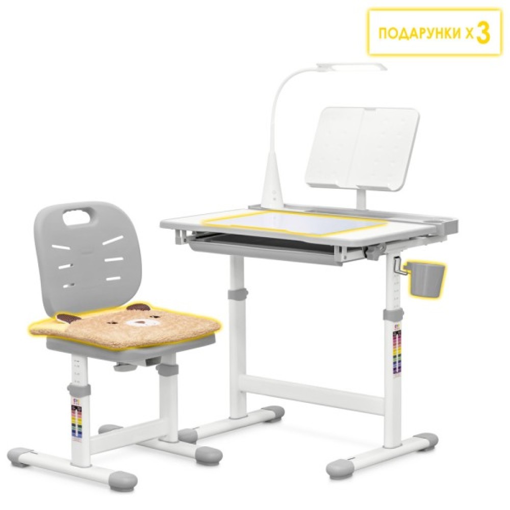 Парта зі стільцем Evo-kids (стіл+стілець+полиця+лампа) Gray (Evo-17 G Ergo)