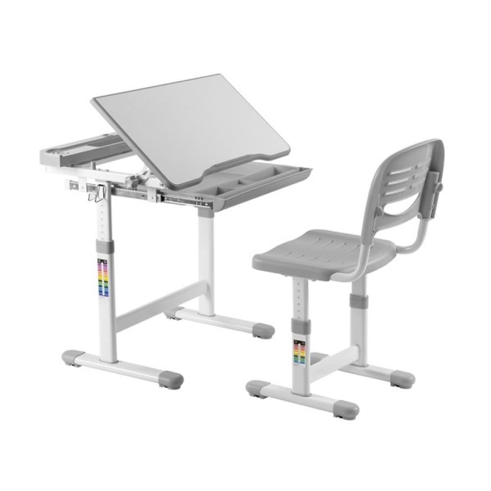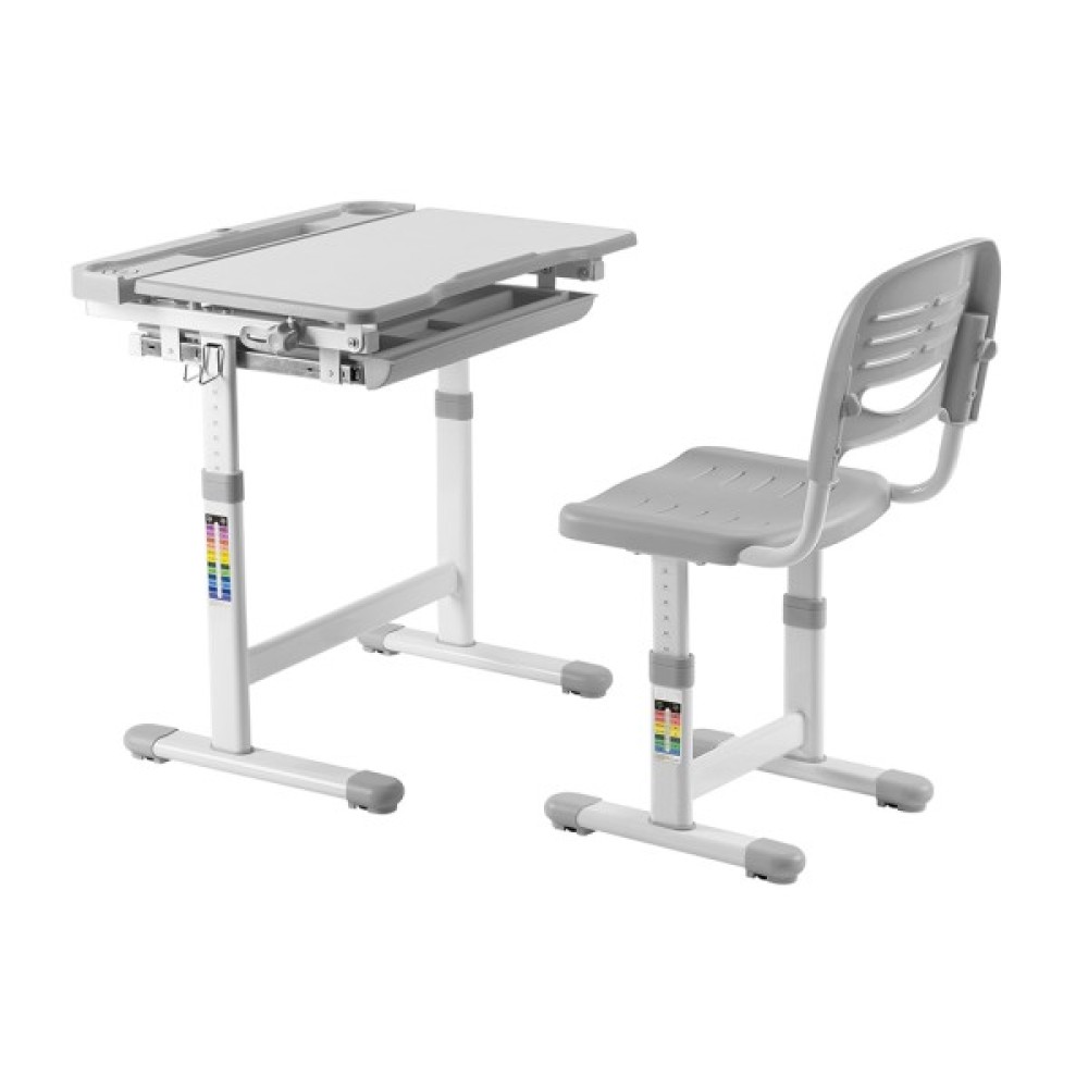 — механізм регулювання висоти дає змогу легко та швидко скоригувати стіл і стілець, що оптимально адаптує його під відповідний зріст дитини. Поверхня навчального стола має антивідблискове покриття й функцію нахилу до 40° для зручного писання, читання й малювання;