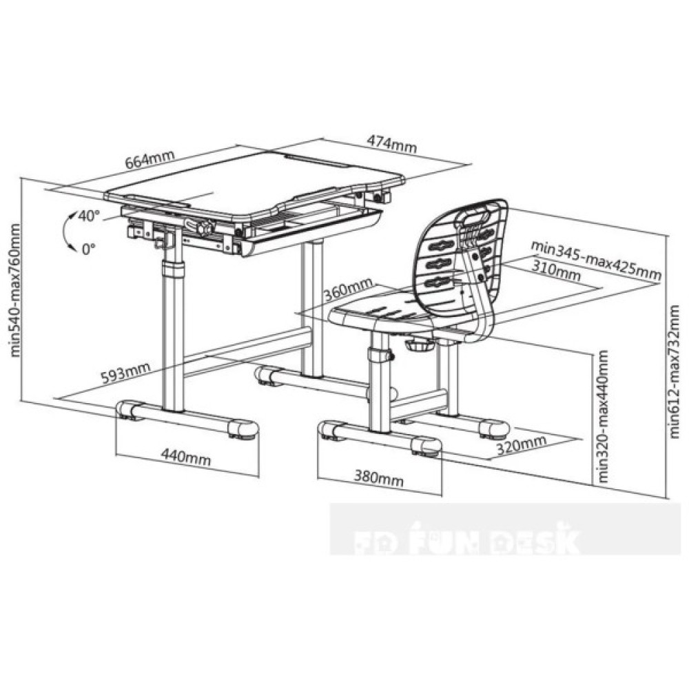 • 0 ° ~ 40 ° забезпечує кращий кут нахилу для письма, малювання та читання