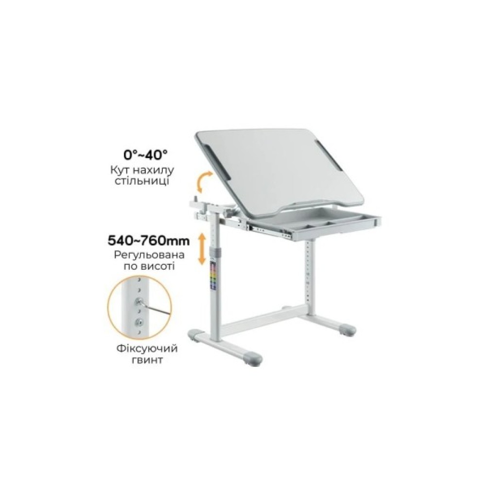 - Ключові переваги:Регульована висота парти: від 540 до 760 мм, що дозволяє налаштувати оптимальну висоту робочої поверхні відповідно до зросту дитини.