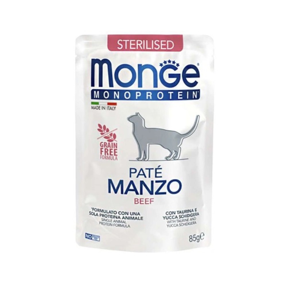 Паштет, котів, Monge, Cat, Monoprotein, Sterilised, яловичина, 85, г, 8009470013741