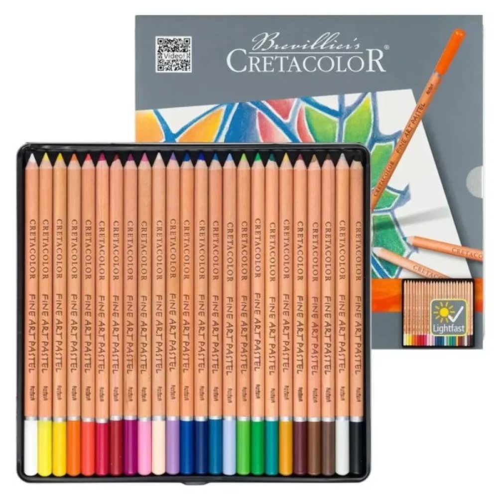 Пастельні олівці - надзвичайно зручні і практичні у використанні.Пастельним олівцям Fine Art Pastel від ТМ Cretacolor притаманний м’який, оксамитовий пастельний штрих, ідеально підходять для промальовки тонких деталей, так як дозволяють краще контролювати лінії при детальних підмальовках.Для роботи з пастельними олівцями, як і з сухою пастеллю, необхідний фактурний папір, який утримуватиме барвистий порошок. Насичені кольори і світлостійкіть гарантують прекресний результат роботи.Кольори відмінно змішуються між собою і легко розмиваються водою.Роботу закріпляють фіксативом.Діаметр кольорового стрижня: 3,8мм.Доступні в наборах по 12, 24, 36 та 72 вдало підібраних кольорів в металевій упаковці.