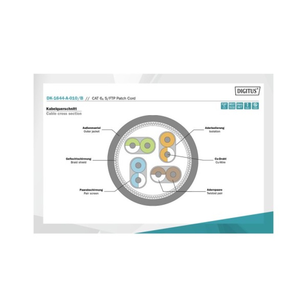Патч-корди DIGITUS® категорії 6 класу EA виробляються та тестуються відповідно до специфікацій ISO/IEC 11801 та DIN EN 50173 категорії 6 A. Вони гарантують, що встановлена кабельна система відповідає вимогам специфікацій каналів ISO та EN, та забезпечать оптимальні рівні DIGITUS ® категорії 6A. Продуктивність тестується до 500 МГц, включаючи робочі характеристики, такі як перехресні перешкоди на ближньому кінці (NEXT).
