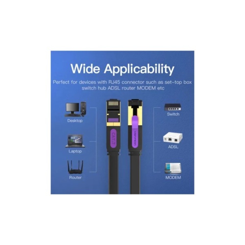 Плоский патч-корд Vention Cat.7 — це високопродуктивне мережеве рішення, розроблене для поєднання естетичної зручності та промислової швидкості. Створений для сучасного цифрового середовища, цей 3-метровий кабель підтримує швидкість передачі даних до 10 Гбіт/с і смугу пропускання 600 МГц, що робить його значно швидшим і функціональнішим за стандартні альтернативи категорій Cat 5 або Cat 6. Його елегантний чорний профіль ідеально підходить для любителів ігор, творчих професіоналів і всіх, хто потребує стабільного з’єднання без затримок для потокової передачі 4K-відео або передачі великих файлів. Окрім високої продуктивності, кабель вирізняється особливою плоскою геометрією, яка дозволяє легко організувати кабелі, прокладаючи їх під килимами, через вузькі щілини дверей або вздовж плінтусів без створення непривабливих випуклостей чи заплутувань.