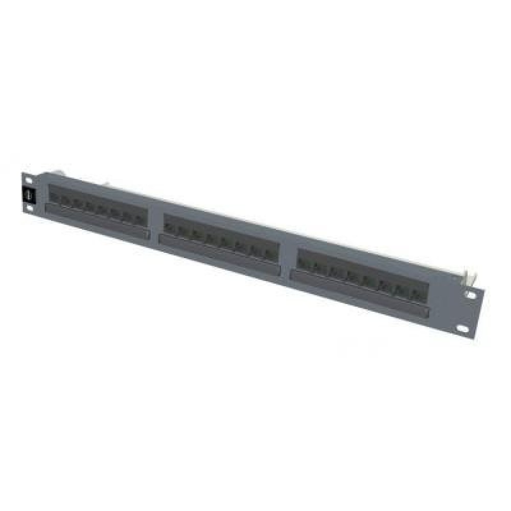 Патч-панель 19", 24xRJ45, UTP, кат.5e, 1U PID-00058. Панель за своїми характеристиками відповідає вимогам категорії 5е. Схеми компенсації окремих розеткових модулів розташовуються безпосередньо на друкованій платі. IDC-контакти типу КАТТ забезпечують простоту підключення кабелів. На лицьовій пластині корпусу передбачено місце для нанесення індивідуального маркування портів. Простота внесення змін, розвитку кабельної системи та зміни її конфігурації. Зручність підключення активного мережевого устаткування і подальшої експлуатації. Нескладний доступ до розеток панелі. 19-дюймовий стандарт.