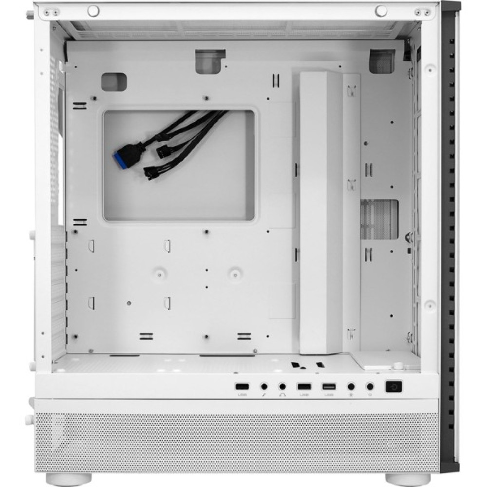 Відразу привертає увагу білий корпус з елегантним RGB-підсвічуванням, яке додасть вашій геймерській станції незабутньої атмосфери. Передня панель має перфоровану структуру MESH, що гарантує чудовий повітряний потік, забезпечуючи ефективне охолодження всіх компонентів. Яскравістю кольорів керує спеціальна кнопка управління підсвічуванням, дозволяючи налаштувати його відповідно до настрою або гри.