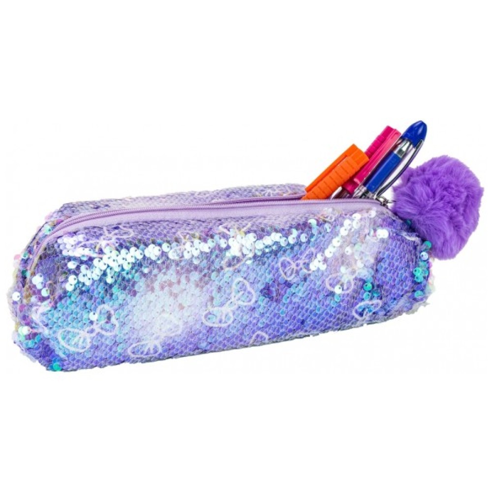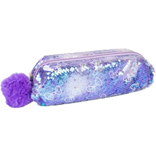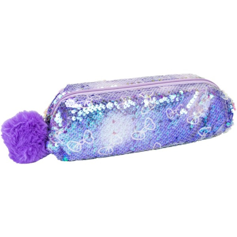 - Пенал із паєтками та помпоном на 1 відділення на блискавці