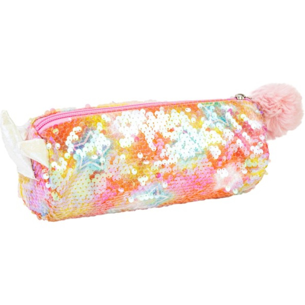 - Пенал із паєтками та помпоном на 1 відділення на блискавці