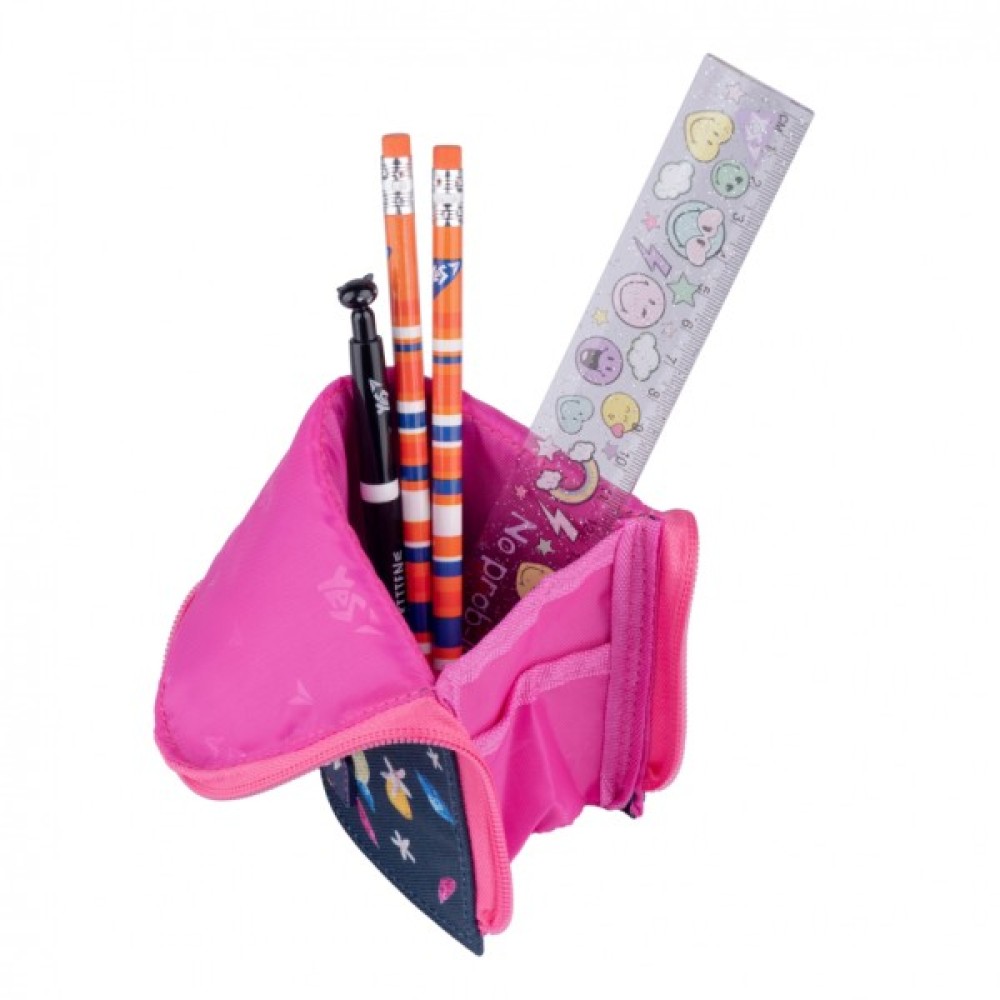Пенал має три положення: пенала і настільного стакана двох типів. Стійка підстава дозволяє використовувати пенал як стакан для письмового приладдя, висота стінок якого може регулюватися за допомогою загину верхньої частини пенала.