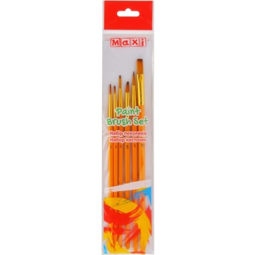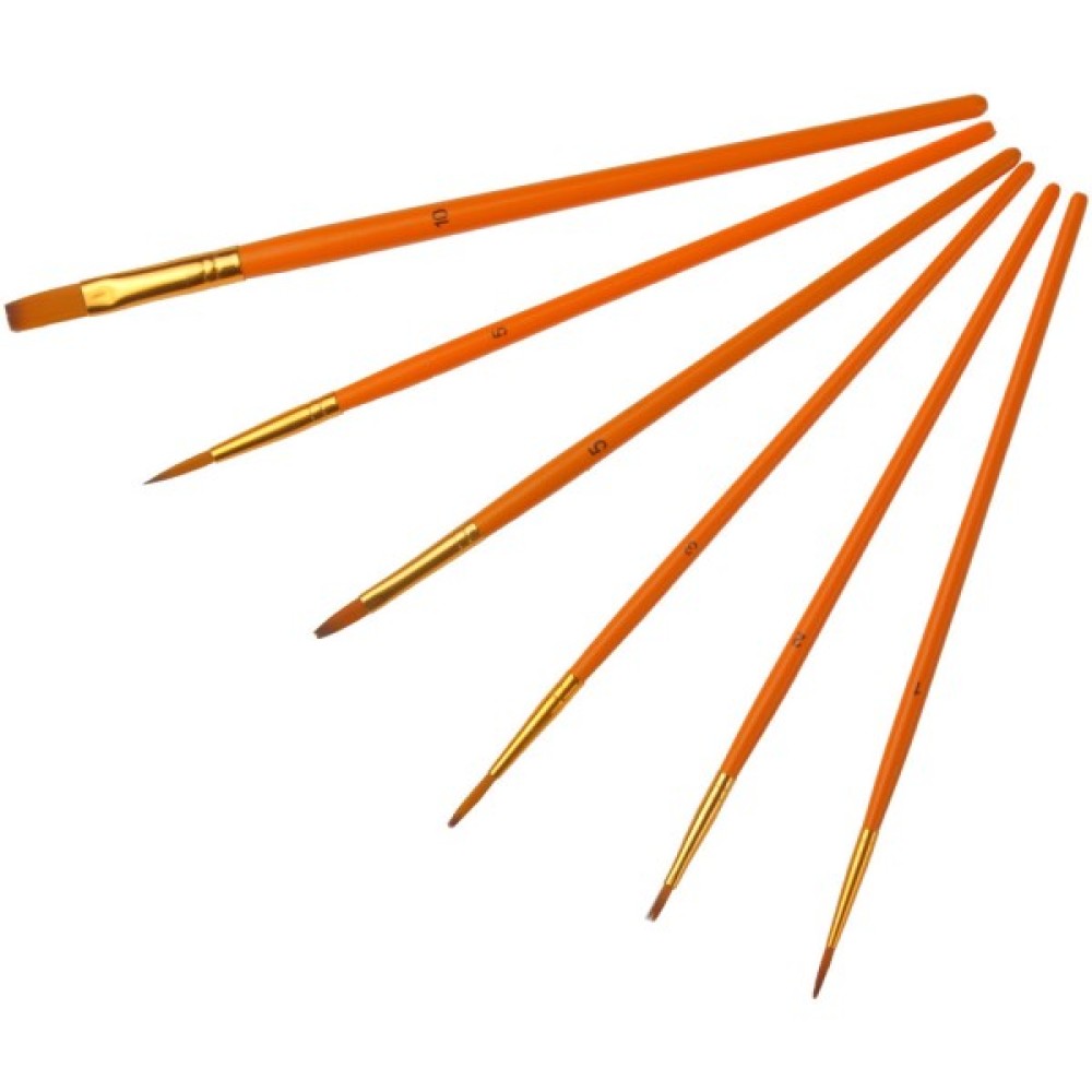 Набір із 6 штук, форма ворсу плоска (№ 2, 5, 10), кругла (№ 1, 3, 5), коротка ручка, захищена лаком для тривалої експлуатації інструмента.