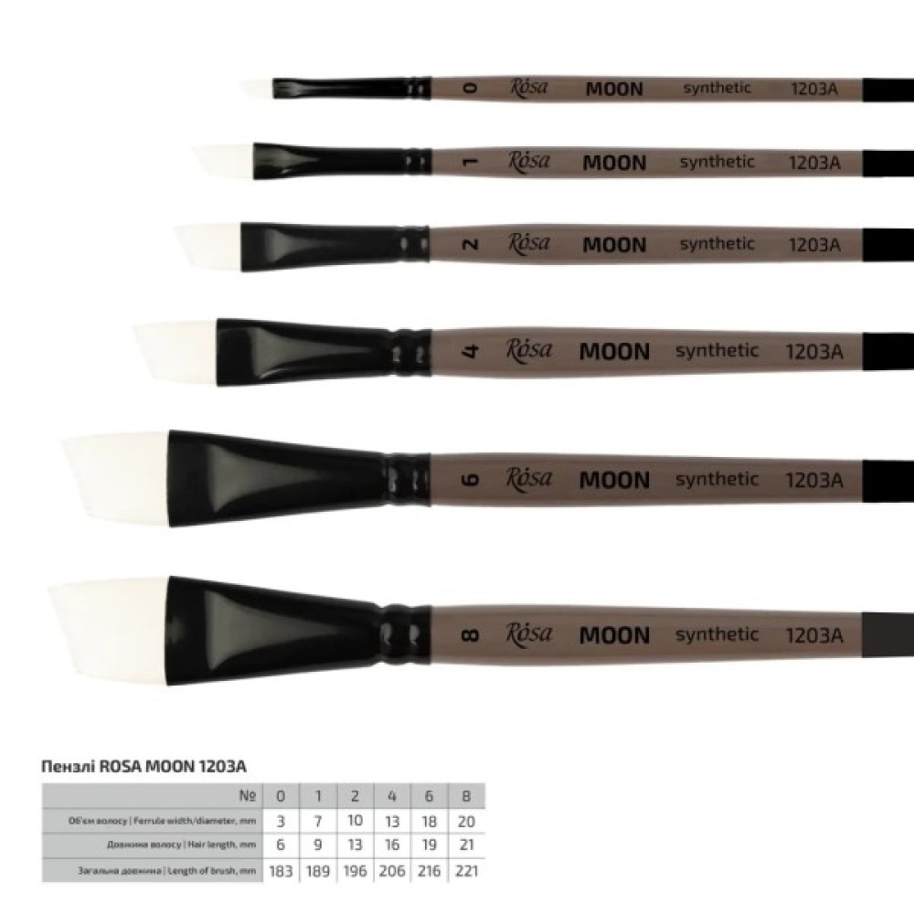 Пензлик для малювання Rosa Синтетика кутова, MOON 1203A, №0 (4823098534259)