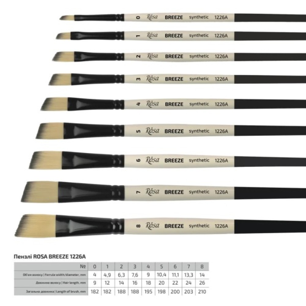 Пензлик для малювання Rosa Синтетика овальна, BREEZE 1226FR, №0 (4823098535669)