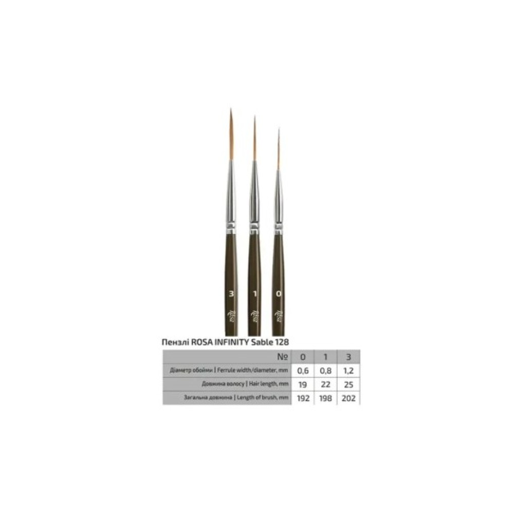 Пензлик для малювання Rosa Соболь круглий, лайнер, INFINITY 128, № 0 (4823098516866)