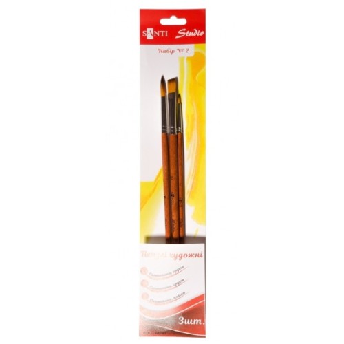 Пензлик для малювання Santi набір художніх №2, синтетика, 1шт. плоска (№10), 2шт круглі (№2,8), коротка ручка (310835)