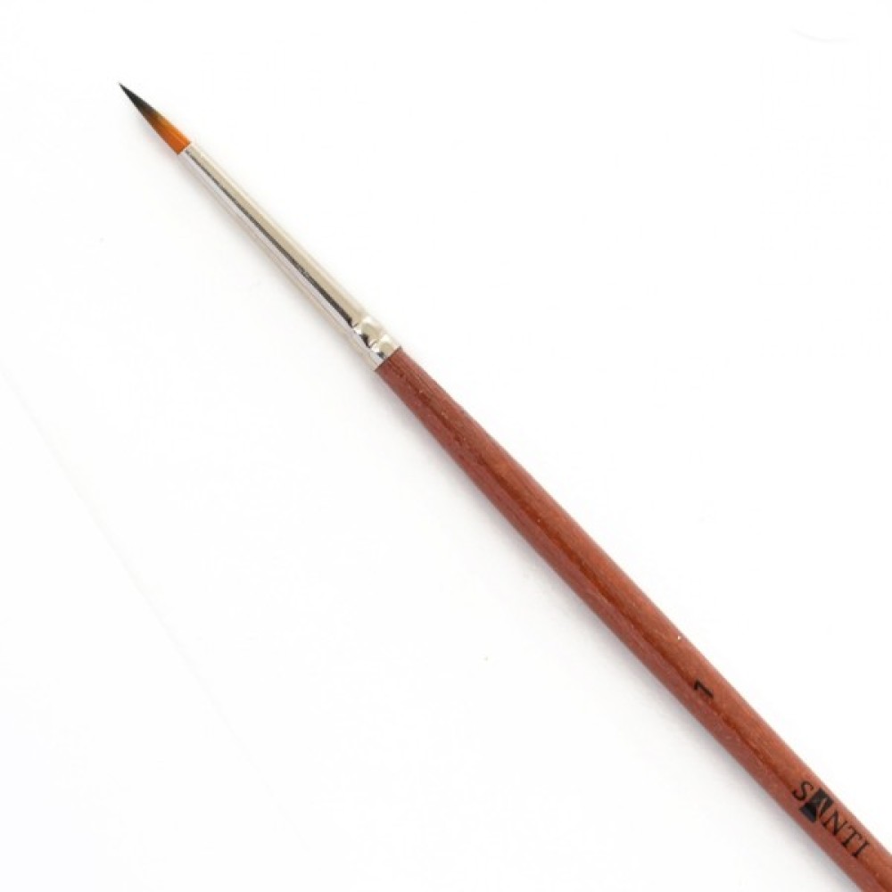 Круглі пензлі «Santi Studio» з двоколірним синтетичним ворсом і короткою ручкою будуть зручні не тільки художникам-професіоналам для деяких технік живопису, але і послужать незамінним супутником учнів і студентів. Пензлі мають високу пружністю і відмінну здатність утримувати рідину. Міцна обойма надійно зафіксована на держаку завдяки професійному клею і обтиску. Призначені як для створення фактури, так і для роботи над деталями, промальовування товстих і тонких ліній.