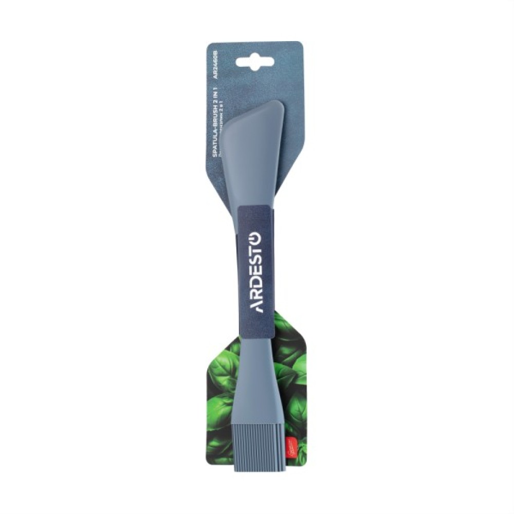 Лопатка-пензлик 2 в 1 ARDESTO Gemini є практичним і універсальним кухонним інструментом, який стане незамінним помічником під час змішування, намащування, перевертання страв або нанесення соусів. Виріб виготовлено з якісного силікону та металу, зумовлюючи міцність і гнучкість. Завдяки елегантному синьому кольору стане стильним акцентом кухні. Розмір аксесуара становить 26,5 × 5 × 1 см. Лопатку-пензлик можна мити в посудомийній машині, що робить догляд за виробом легким.