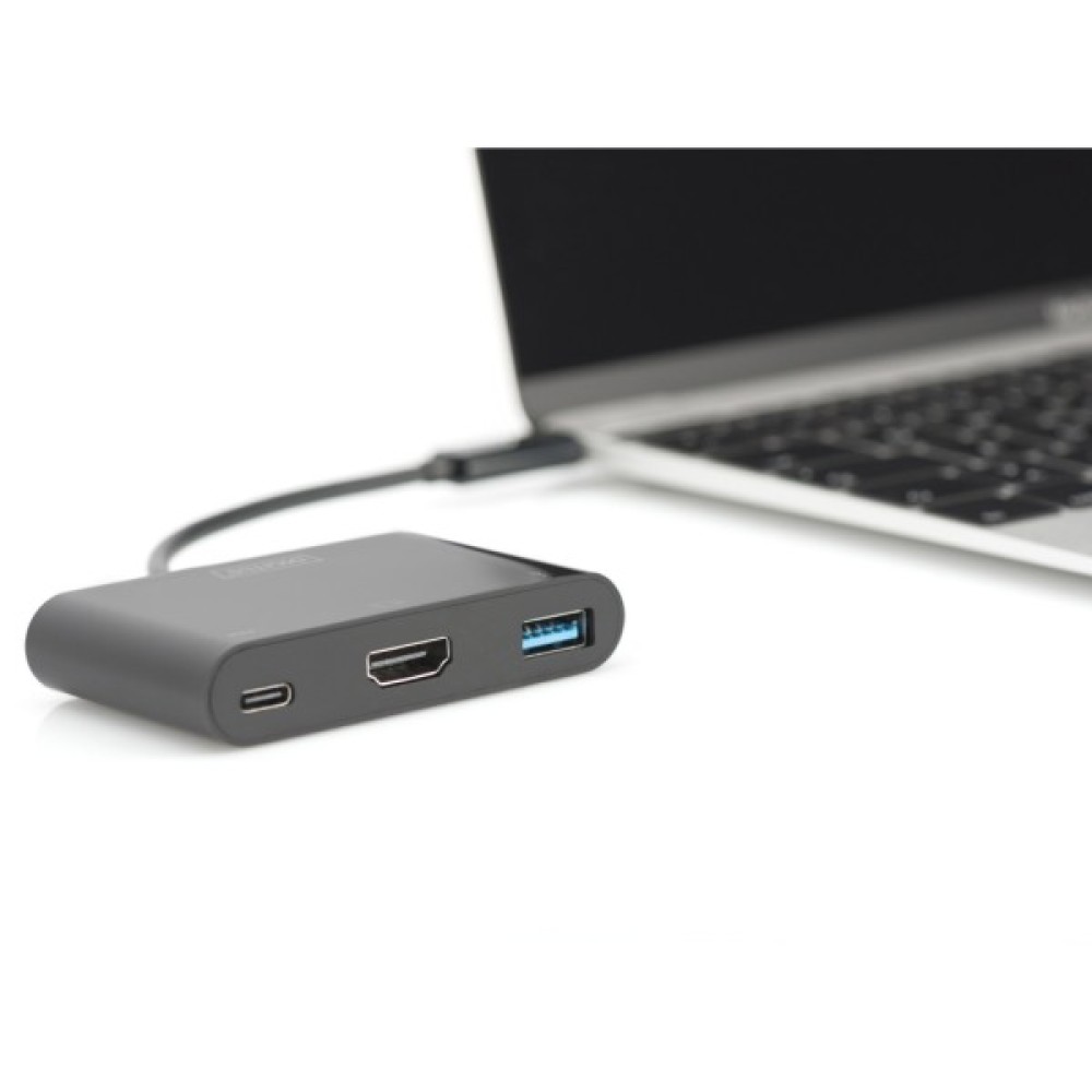 Розширте пристрій USB-C™ ще трьома роз'ємами (HDMI, USB 3.0, USB-C™). Мультиадаптер USB Type-C™ HDMI, 3 порти розширять ваш пристрій USB-C™ ще трьома роз'ємами. Підключіть через роз'єм HDMI додатковий телевізор, монітор до ноутбука або проведіть презентацію за допомогою проектора. Максимально можлива роздільна здатність становить UHD (4K/30 Гц). Крім того, адаптер має роз'єм USB 3.0, через який можна підключати зовнішні пристрої USB.