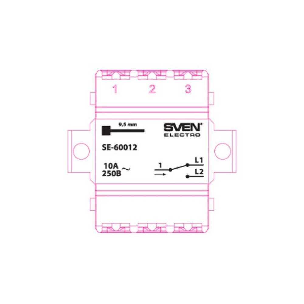 Електроустановочне обладнання SVEN SE-60012 white (4895134780845) - одинарний перемикач на два напрямки, який призначений для комутації електричних ланцюгів. Функція перемикання на два напрями дає можливість управління одним освітлювальним приладом з декількох точок. Величина максимально допустимого струму навантаження становить 10А. Матеріал корпусу - негорючий ABS-пластик, який забезпечує міцність, безпеку, нагрівостійкість в процесі експлуатації, стійкий до впливу температур до 650 °С. Основу механізму з термостійкого PBT-пластика володіє необхідними діелектричними властивостями і забезпечує стійкість до займання до 850 °С. Підпружинені кріпильні зачепи для зручності монтажу. Поліпшена конструкція клем для дротів.