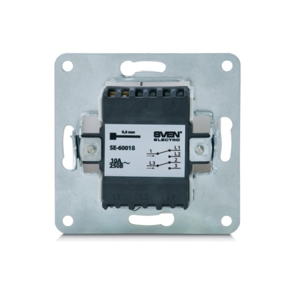 Електроустановочне обладнання SVEN SE-60018-C cream (4895134781545) - подвійний перемикач на два напрямки, який призначений для комутації електричних ланцюгів. Функція перемикання на два напрями дає можливість управління одним освітлювальним приладом з декількох точок. Величина максимально допустимого струму навантаження становить 10А. Матеріал корпусу - негорючий ABS-пластик, який забезпечує міцність, безпеку, нагрівостійкість в процесі експлуатації, стійкий до впливу температур до 650 °С. Основу механізму з термостійкого PBT-пластика володіє необхідними діелектричними властивостями і забезпечує стійкість до займання до 850 °С. Підпружинені кріпильні зачепи для зручності монтажу. Поліпшена конструкція клем для дротів.