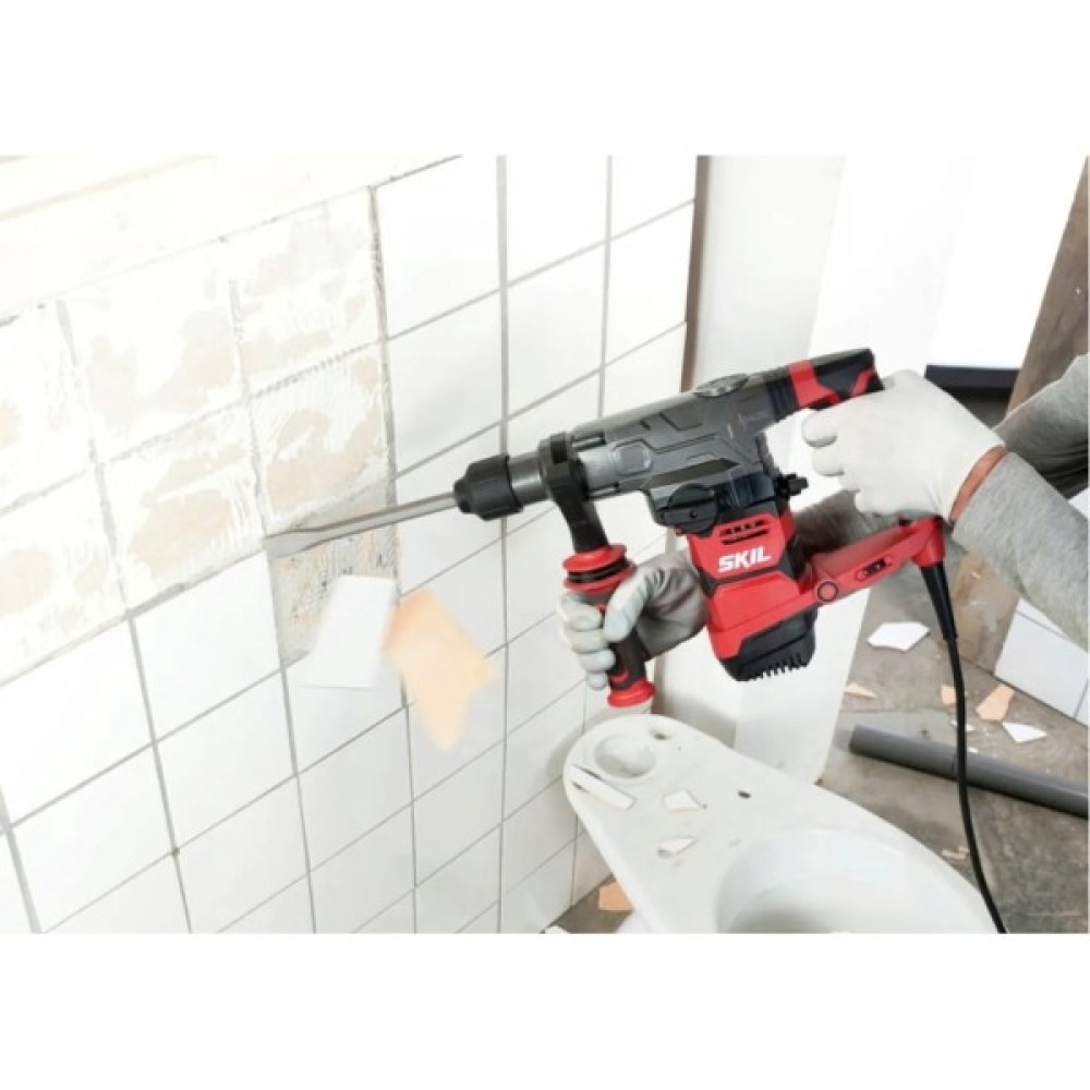 Трифункціональний перфоратор SKIL 1781 SDS має дуже потужний двигун потужністю 1500 Вт і попередній вибір швидкості для оптимального контролю. Він має функцію молотка для свердління в бетоні, функцію зупинки удару для звичайного свердління та функцію зупинки обертання для довбання. Завдяки системі зменшення вібрації (VRS), зручній L-подібній формі та міцному магнієвому корпусу цей дриль ідеально підходить для складних робіт, пов’язаних із свердлінням бетону до 36 мм і довбанням. Система «SDS+» забезпечує швидку та легку заміну аксесуарів. М'яка рукоятка проти ковзання та регульована антивібраційна бічна ручка забезпечують комфортне керування двома руками. За допомогою зручного вимірювача глибини ви можете встановити глибину свердління для глухих отворів. SKIL 1781 GB постачається в міцному кейсі з набором із трьох свердел для бетону SDS+ на 8, 10 і 12 мм, гострого долота, плоского долота та 13-мм патрона з адаптером SDS+.