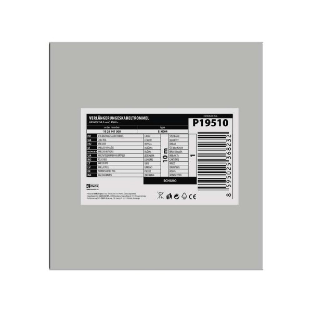 Мережевий, подовжувач, EMOS, катушка, 4, роз, 10, м, P19510