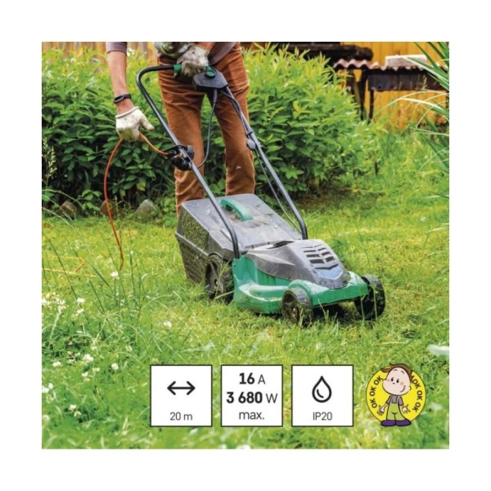 Подовжувач P01220R від чеського виробника Emos. Ізоляція виготовлена з негорючого ПВХ. Відмінне рішення для саду та городу. Має помаранчеве забарвлення для легкого виявлення дроту на землі.