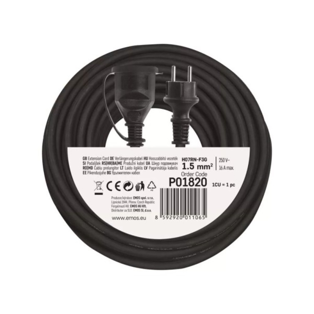 Подовжувач P01820 від чеського виробника EMOS. Компактна переносна розетка із заземленням дає змогу швидко під'єднати прилад для використання на відстані. Розетка подовжувача рейтинг захисту IP44.